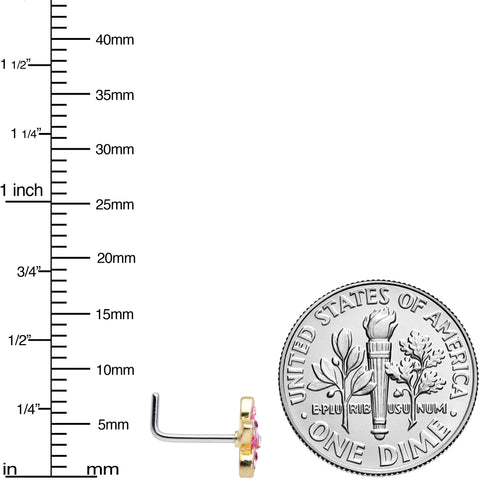 20 Gauge 1/4 Clear Purple Gem Flower L Shape Nose Ring