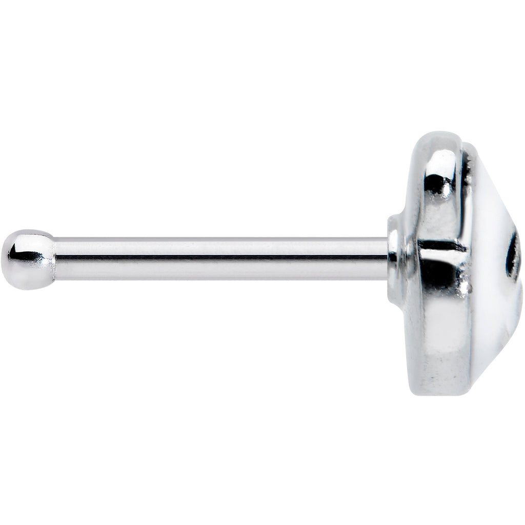 The panda on this 20 gauge nostril ring is so cute, it's almost un-bear-able! It's made with a 6mm durable 316L surgical grade stainless steel straight post. It features a panda bear charm, inlaid with realistic black and white colors. It also features matching detailing to give it a simple but incredibly sweet look. This beautiful bear is sure to make your nostril piercing irresistible!Specifications