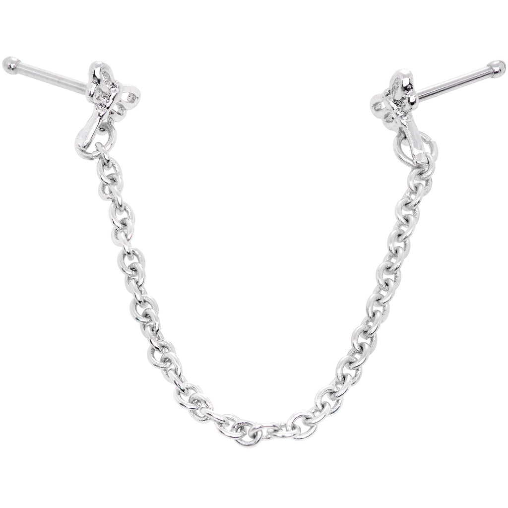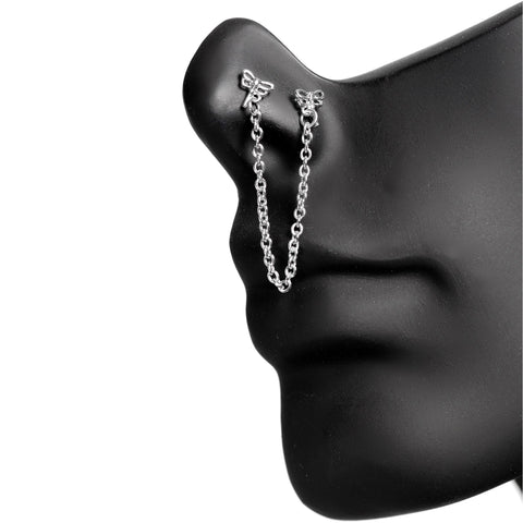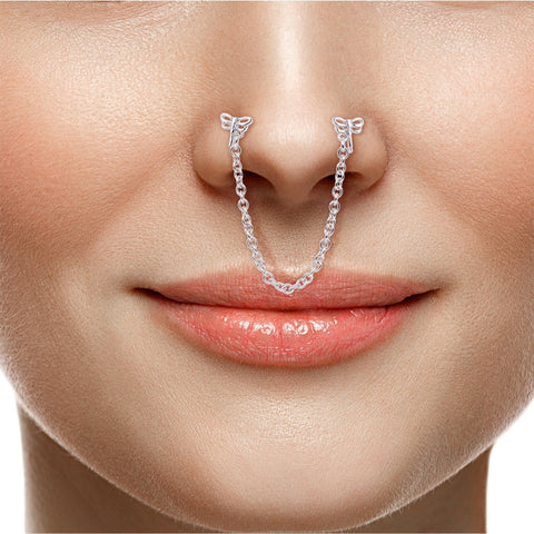If you've got multiple nose piercings and are looking for brand new body jewelry then check out this 20 gauge double nose bone chain jewelry that you can wear in your multiple nostril piercings. Made with 6mm durable 316L surgical grade stainless steel posts, this double nose piercing jewelry features dragonfly ends and two nose bones connected by a dangle chain that can be worn in two piercings in one nostril or in high nostril piercings on either side of your nose.
