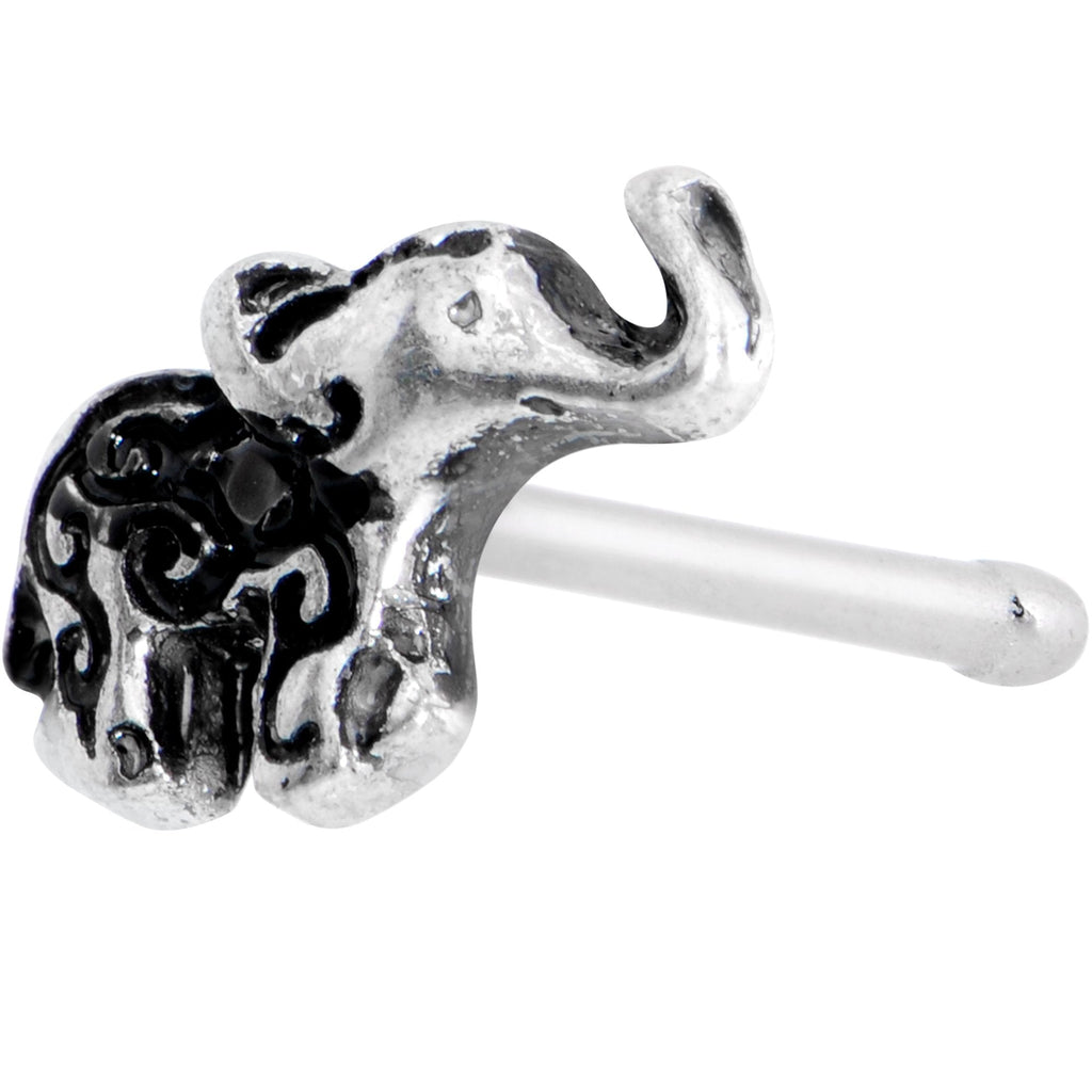 Celebrate one of earth's largest mammals with this awesome nose bone! A very happy elephant, with her trunk facing the sky, is mounted on the end of this nose bone piercing. The elephant charm is mounted on a 6mm straight barbell made with durable 316L surgical grade stainless steel.