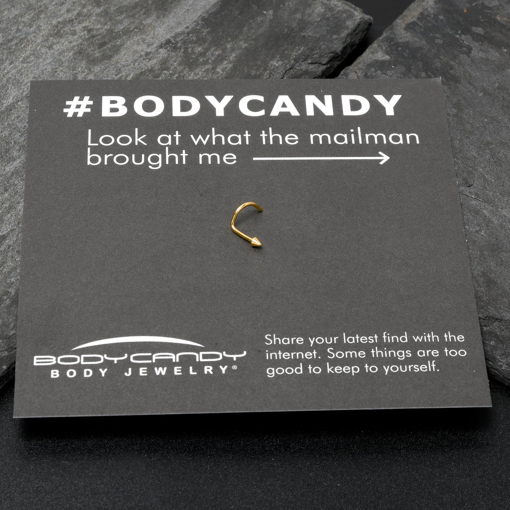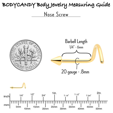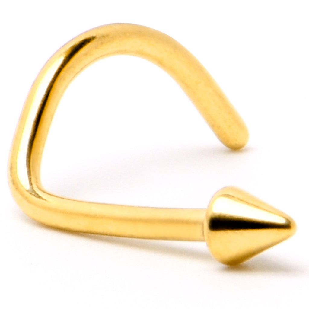 Why go big when you can go stylish and small with this 20 gauge nostril jewelry? It is made with a 6mm gold tone PVD over ASTM F-136 titanium (solid medical grade titanium) post. It features a petite cone end for an understated yet stylish appearance. It is designed for a left side nostril piercing and also has a curving design that makes for comfortable wear. You will be loving the simple beauty of this diminutive nose piercing ring.Specifications