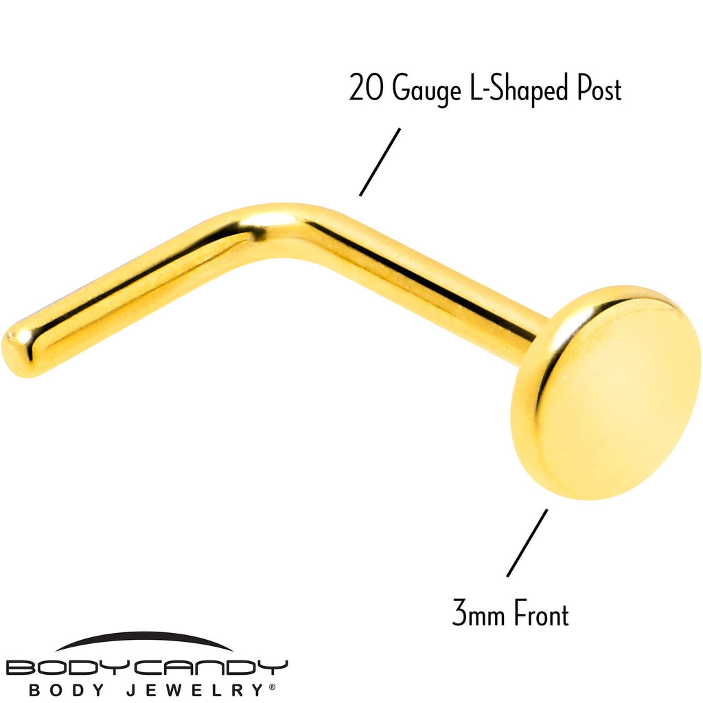 Hypoallergenic jewelry for sensitive skin20 Gauge 1/4 Gold Tone ASTM F-136 Titanium 3mm Disc L Shape Nose Ring