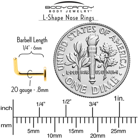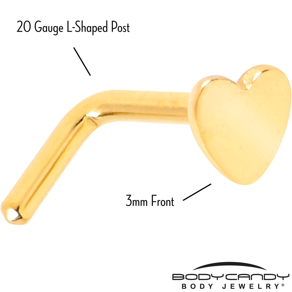 Hypoallergenic jewelry for sensitive skin20 Gauge 1/4 Gold Tone ASTM F-136 Titanium Heart End L Shape Nose Ring