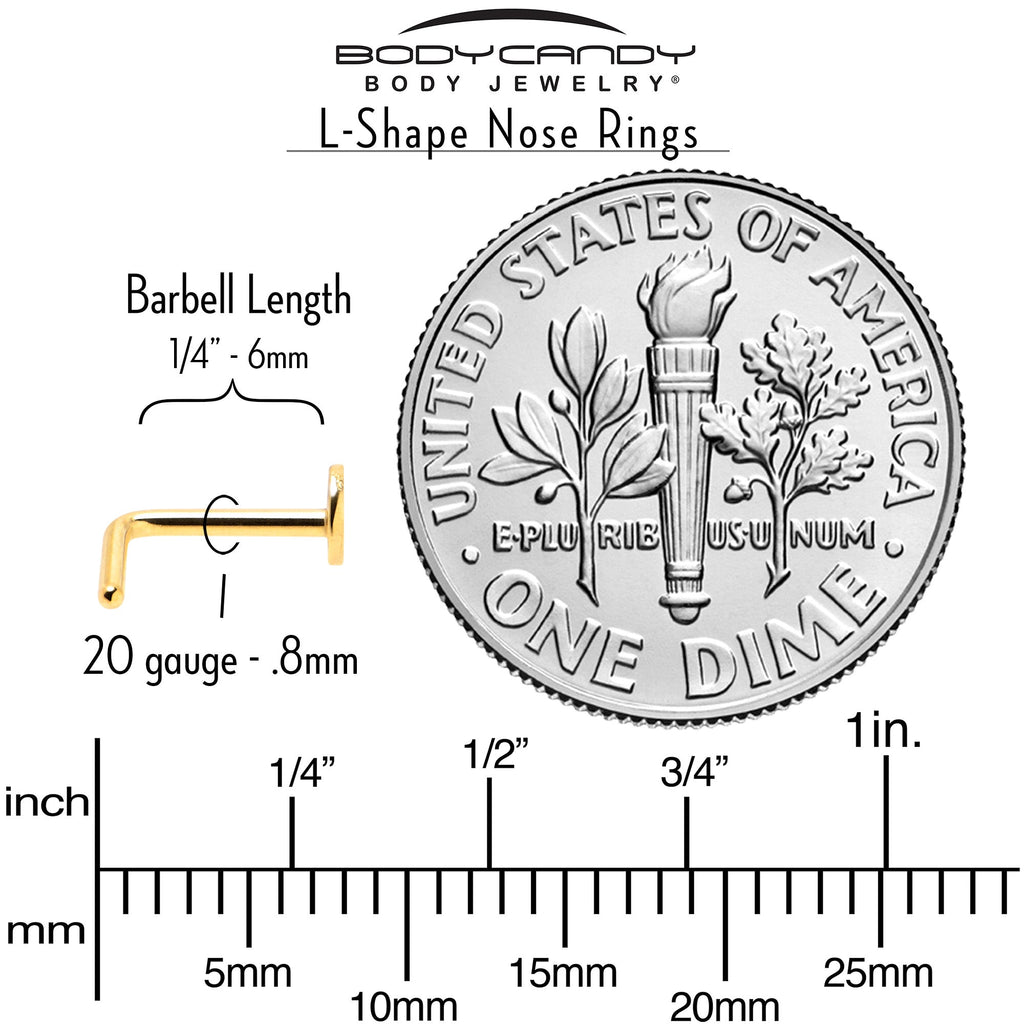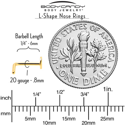 Hypoallergenic jewelry for sensitive skin20 Gauge 1/4 Gold Tone ASTM F-136 Titanium Moon End L Shape Nose Ring