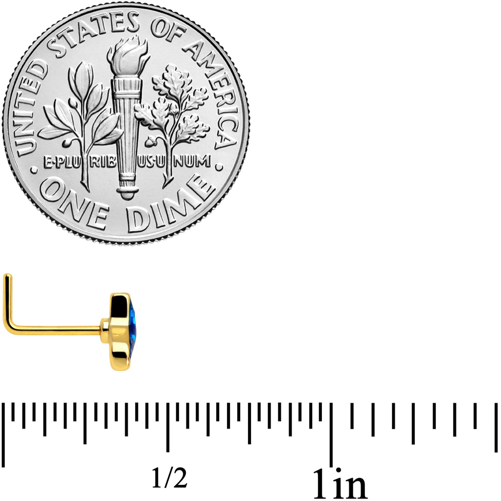 The mermaid who left her tail on this 20 gauge nostril jewelry had style to spare! It's made with a 6mm length at the bend gold tone PVD over 316L surgical grade stainless steel L-shaped post. The end features a mermaid's tail charm in glittery, pearlescent blue. It's designed to make insertion and removal a breeze while making for comfortable wear, as well as offering tons of nautical glamour. Add some summer style to your nostril piercing with this marvelous mermaid's tail nostril ring!Specifications