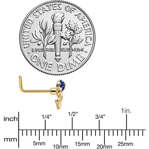 20 Gauge 1/4 Gold Tone Textured Blue Octopus L Shape Nose Ring