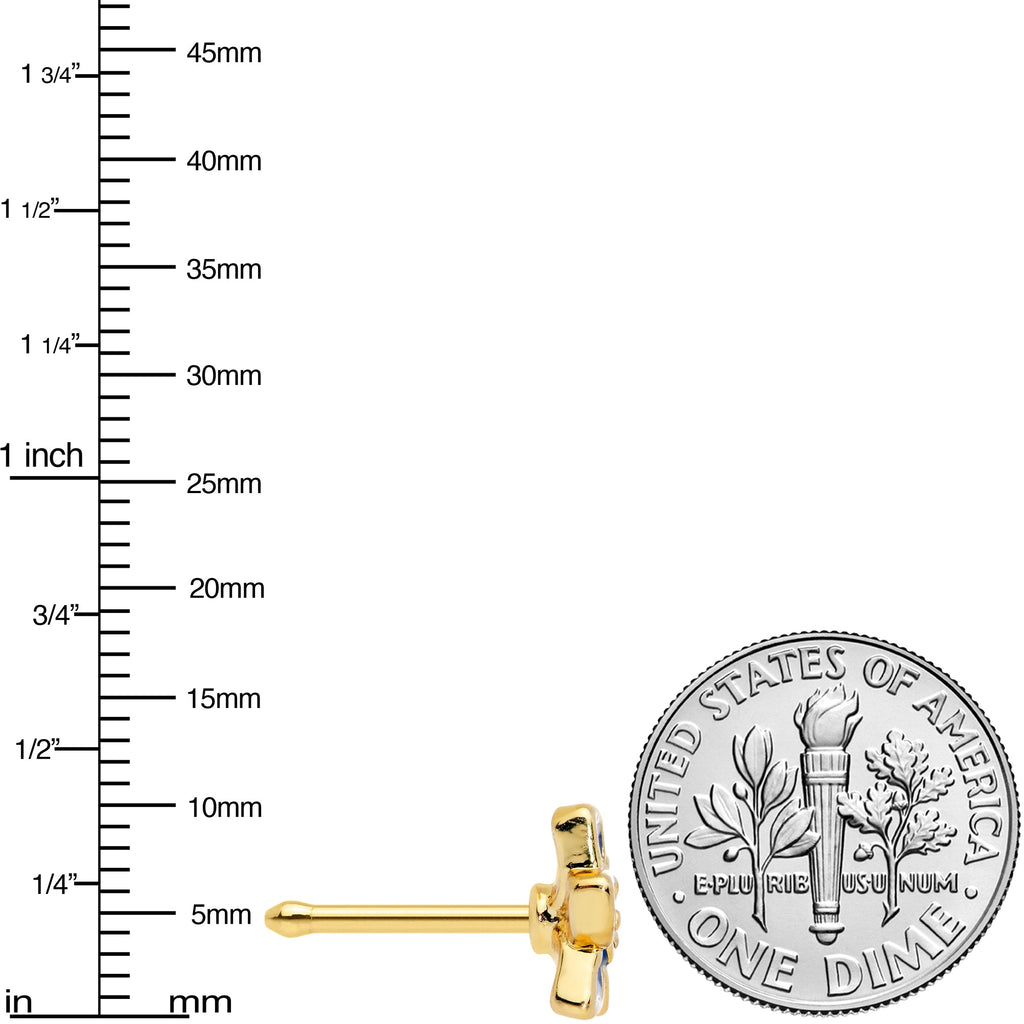 20 Gauge 1/4 Gold Tone White Blue Flower Nose Bone