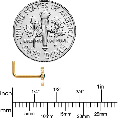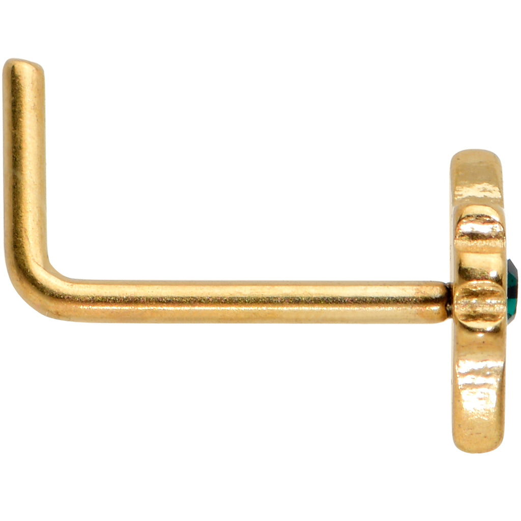 20 Gauge 1/4 Green CZ Gem Gold Tone Simple Pot Leaf L Shape Nose Ring