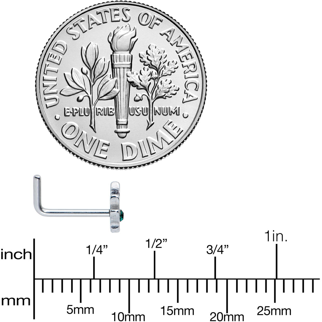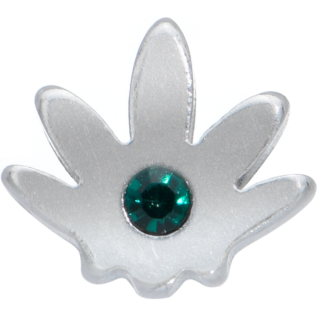 Get your smoke on in style when you're sporting this 20 gauge nostril ring! It's made with a 6mm length at the bend 316L surgical grade stainless steel L-shaped post. It features a simple pot leaf charm with a green cubic zirconia gem at the center. This perfect pot leaf nose piercing ring is sure to have you feeling a buzz!Specifications