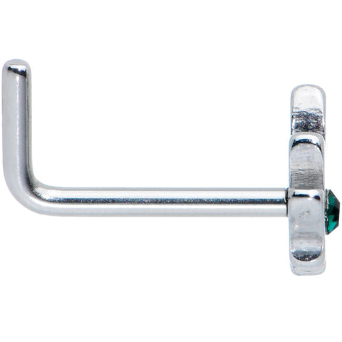 20 Gauge 1/4 Green CZ Gem Simple Pot Leaf L Shape Nose Ring