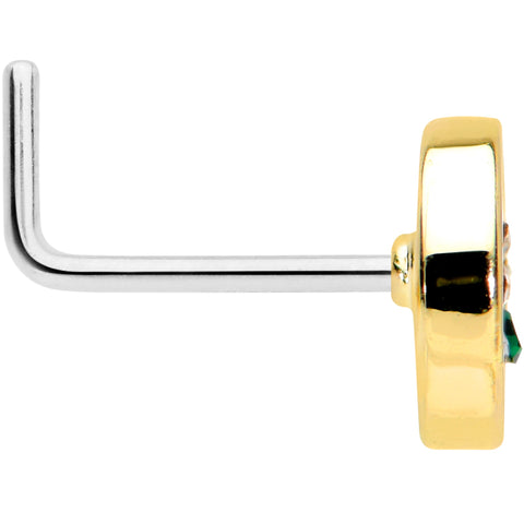 20 Gauge 1/4 Green Gem Gold Tone Pot Leaf Circle L Shape Nose Ring
