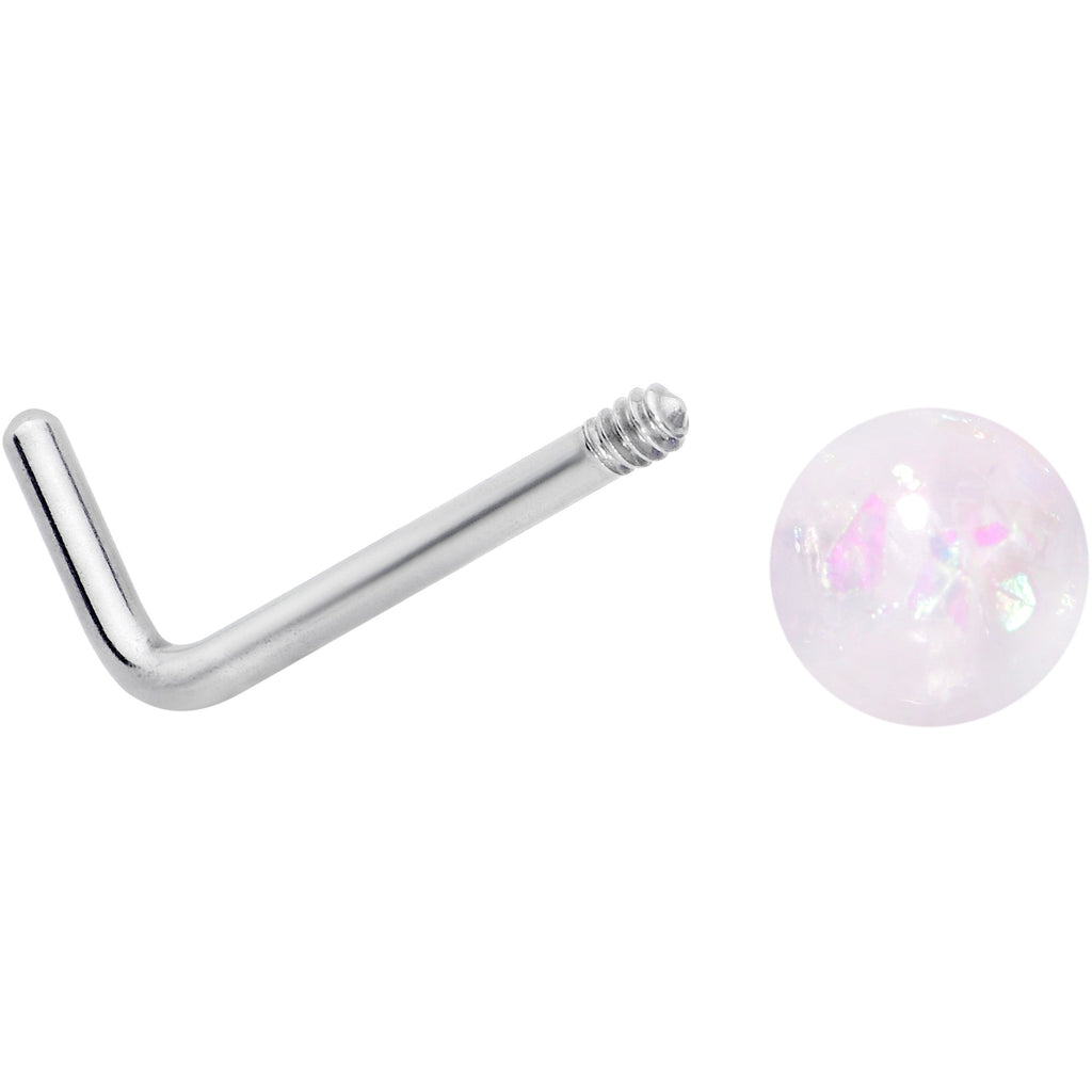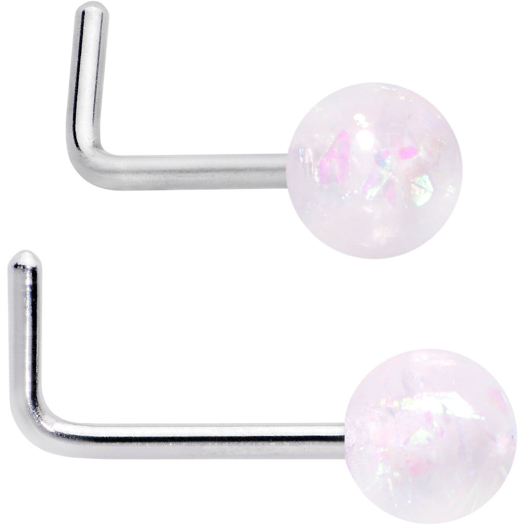 20 Gauge (.8mm), 1/4" (6mm) Length at the Bend, 316L Surgical Grade Stainless Steel L-Shaped Post, Faux Opal, Sold as a Set of 6