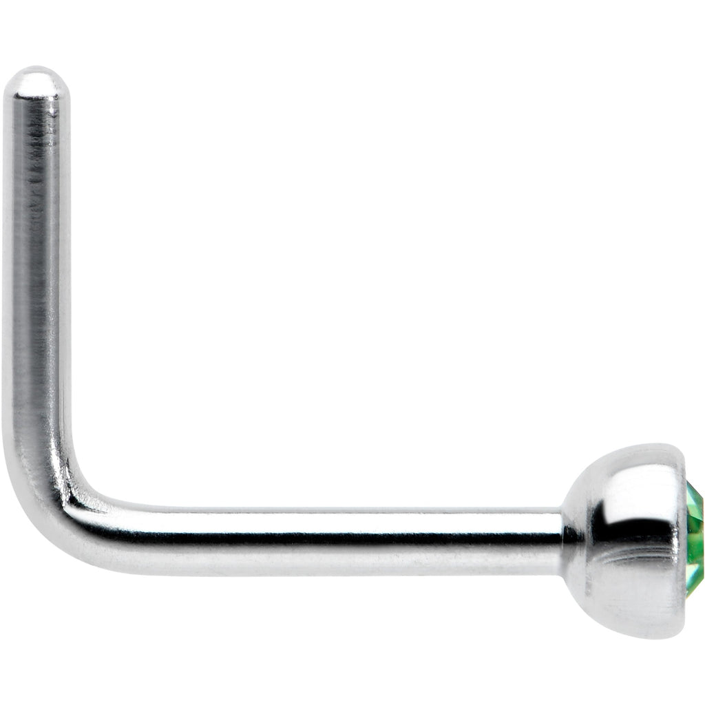 20 Gauge 1/4 Green Gem Press Fit L Shape Nose Ring