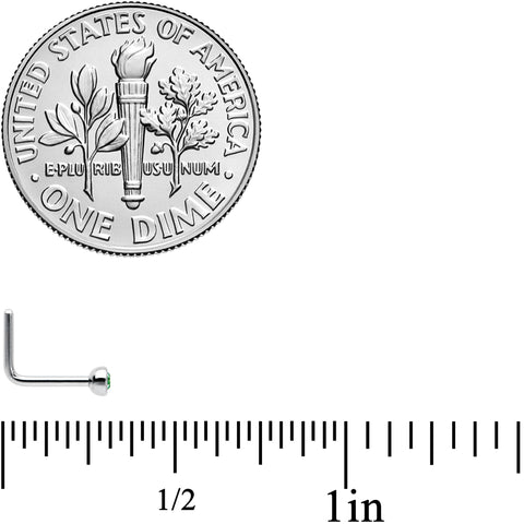 The simple style of this 20 gauge nostril ring will have everyone green with envy! It's made with a 6mm length at the bend 316L surgical grade stainless steel L-shaped post. It features a green gem set into the end for a look that's colorful and stylish but also understated and subtle. This elegant nose piercing jewelry has everything you could want!Specifications