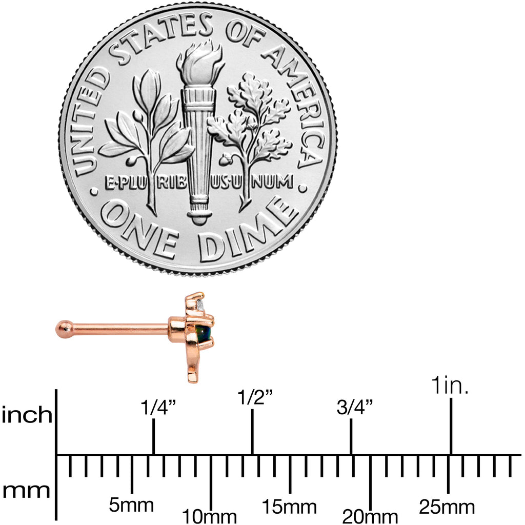 20G 1/4 Green Synthetic Opal Rose Gold Tone Twist Nose Bone