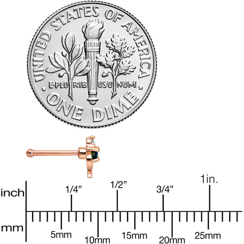 This 20 gauge fashion nose ring is sure to catch your eye! It's made with a 6mm rose gold tone PVD over 316L surgical grade stainless steel straight post. It features a deco charm with a clear cubic zirconia gem and a green synthetic opal gem too for a stylish look. Put a whole new twist in your look with this on-trend and super stylish nostril jewelry!
