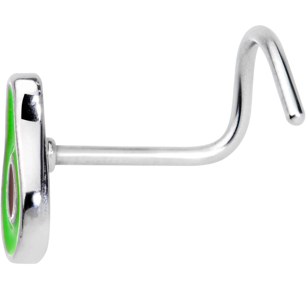 This 20 gauge nose ring is downright delicious! It's made with a 6mm length at the bend 316L surgical grade stainless steel straight post and features a yummy looking green avocado charm with a brown pit. The eye-catching color and trendy fruit make for a look that's stylish and whimsical. It also features a curving design for comfortable wear and easy insertion. If you're all about avocados, you'll want to get your hands on this tasty nose piercing jewelry!Specifications