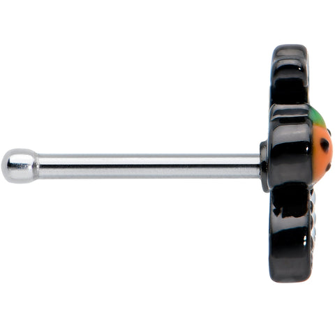 The ghost on this 20 gauge Halloween nostril ring brought a friend along to party! It's made with a 6mm durable 316L surgical grade stainless steel straight post. It features a spooky ghost charm, with white inlay. The ghost is carrying an orange jack o'lantern for added color and creepy style. You'll be absolutely haunting this Halloween when you're rocking this ghoulish ghost nose piercing jewelry!Specifications