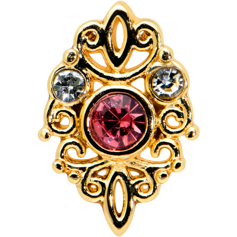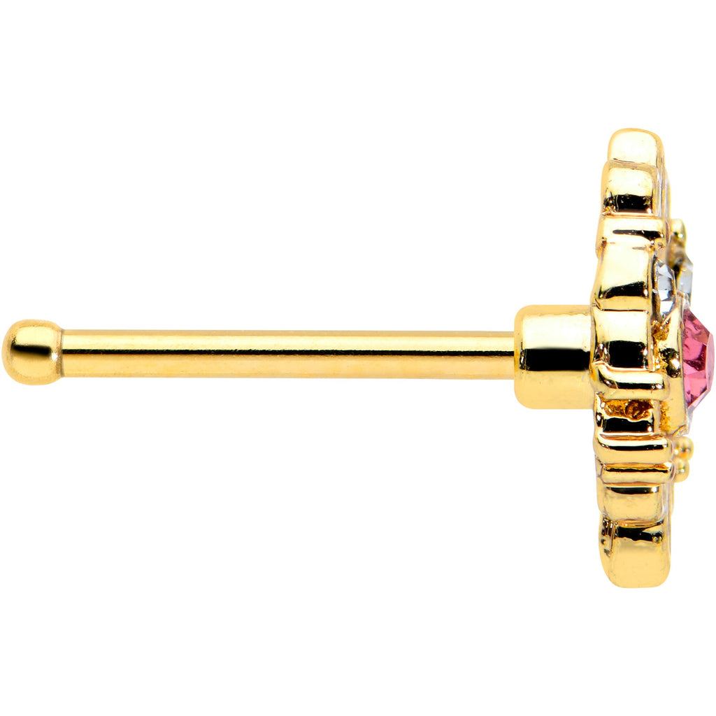 20 Gauge 1/4 Pink Clear Gem Gold Tone Lace Love Nose Bone