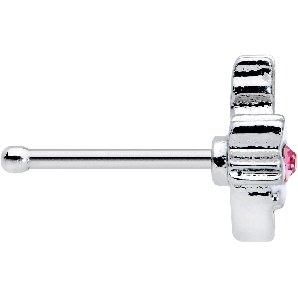 20 Gauge 1/4 Pink Gem Black Cat White Flowers Nose Bone