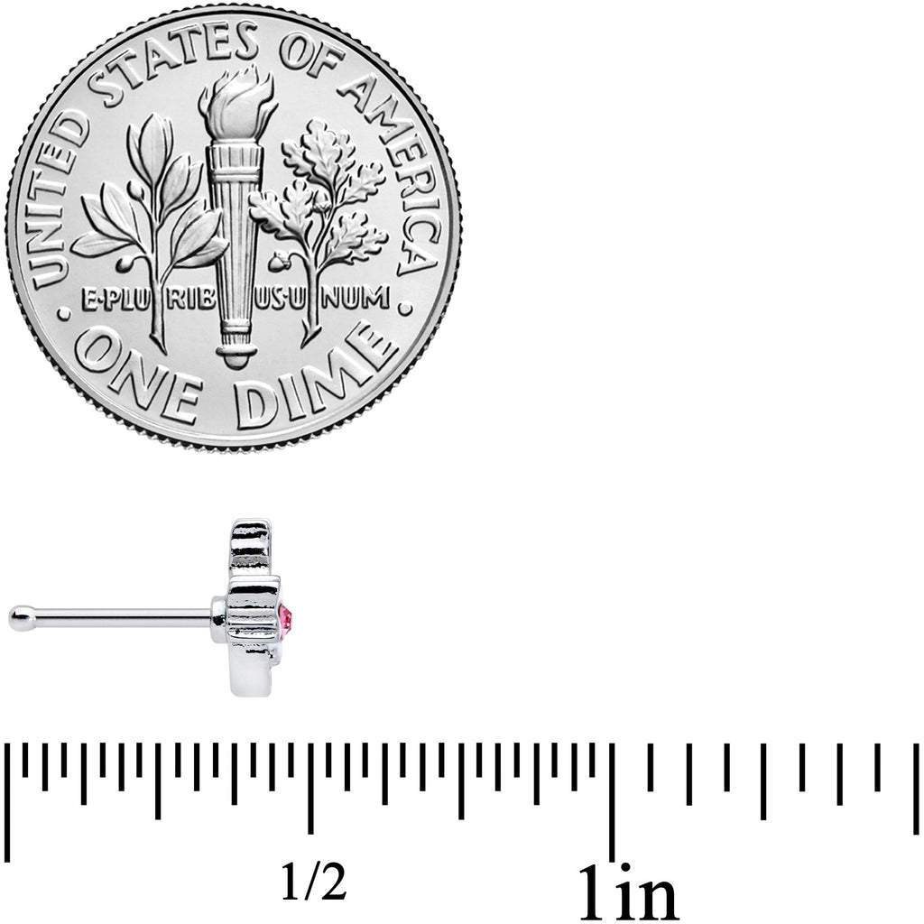 Park yourself in some pretty flowers, like the kitty on this 20 gauge nostril ring! It's made with a 6mm durable 316L surgical grade stainless steel straight post. It features a black cat charm. The cat is seen from the back and is relaxing in some pink and white flowers. The flowers are embellished with pink gems for an extra bit of style that's sure to make you purr! Take a rest and look great doing it like the beautiful black cat on this floral nose piercing jewelry!Specifications