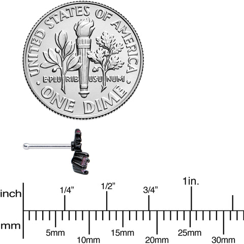 20 Gauge 1/4 Pink Gem Fanciful Black Flower Nose Bone