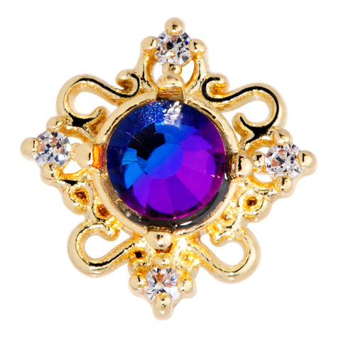 20 Gauge 1/4 Purple Tourmaline Gold Tone Filigree Frame Nose Bone