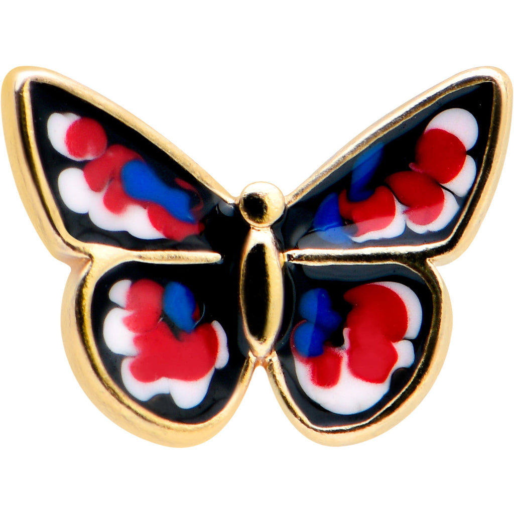 20 Gauge 1/4 Red Blue White Butterfly Nose Bone