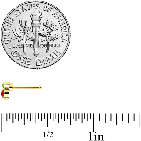 Why put your cherries in a pie when you can rock them in this 20 gauge nostril ring? It's made with a 6mm gold tone PVD over 316L surgical grade stainless steel straight post. It features a cherry fruit charm. The cherries are each single red gems, embellished with a tiny stem and green gem leaf. For a look that's always delicious, this fabulous fruit nose piercing ring is sure to please!Specifications