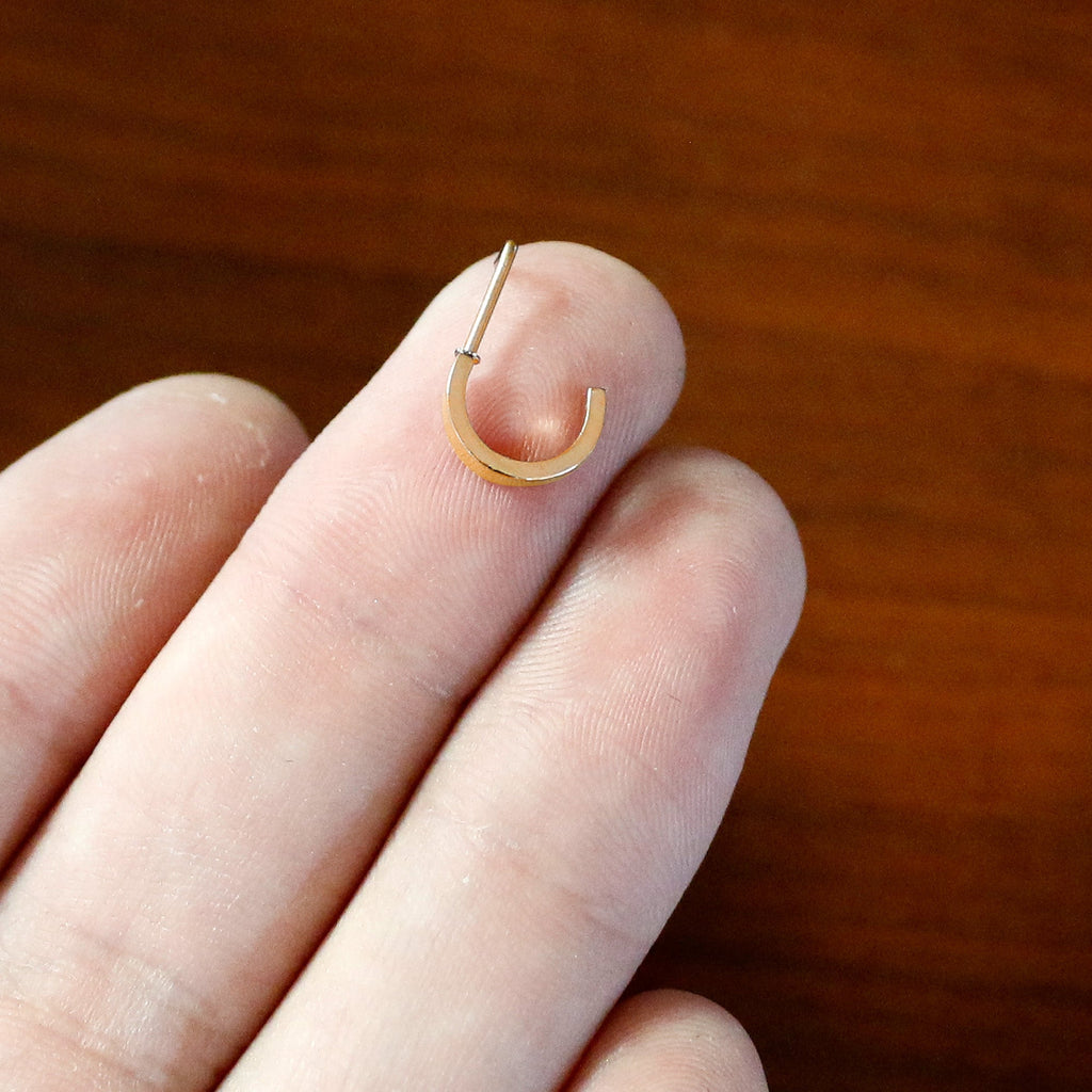 20 Gauge 1/4 Rose Gold Tone Simply Smooth Faux Hoop L Shape Nose Ring
