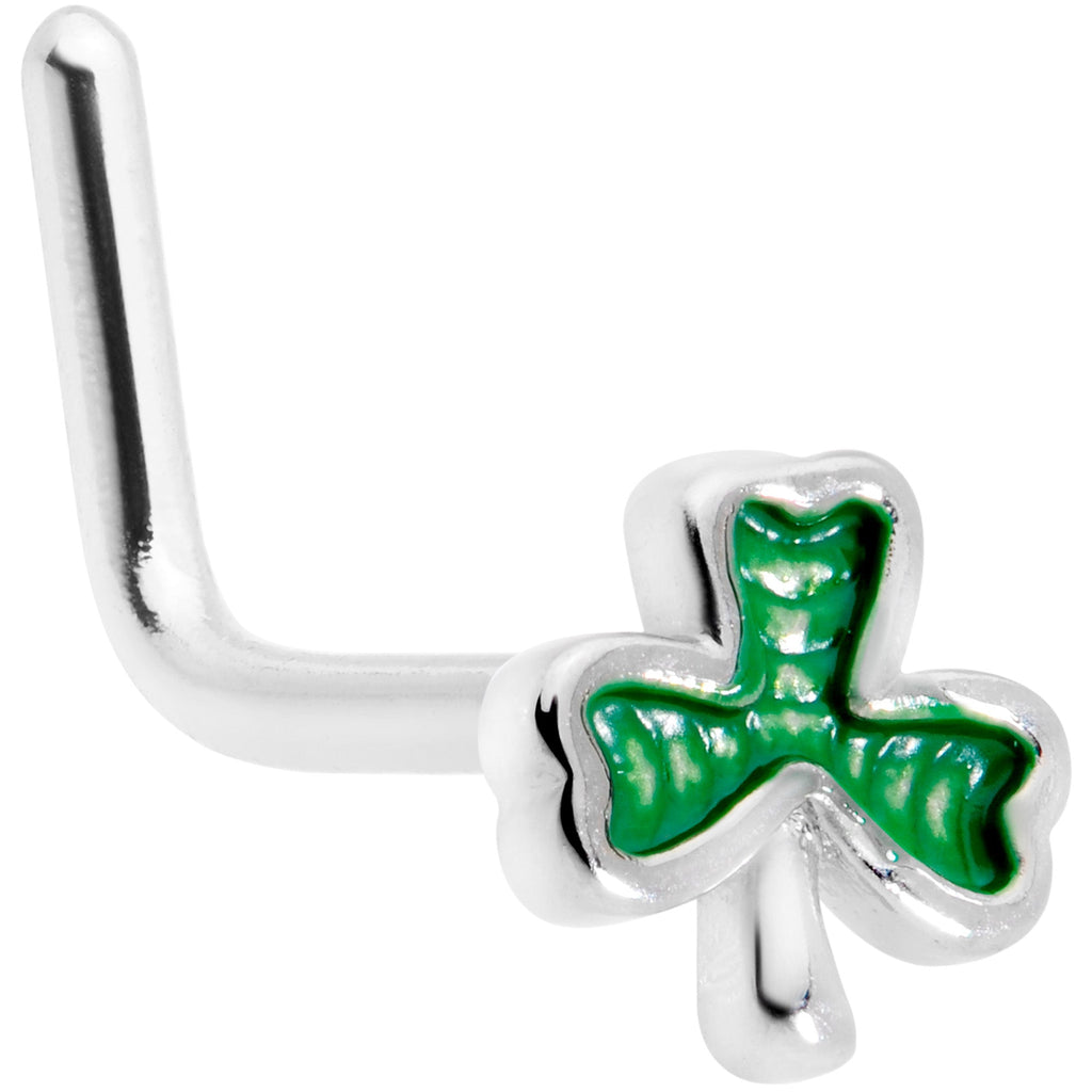 20G 1/4 St Patricks Day Shamrock L Shaped Nose Ring