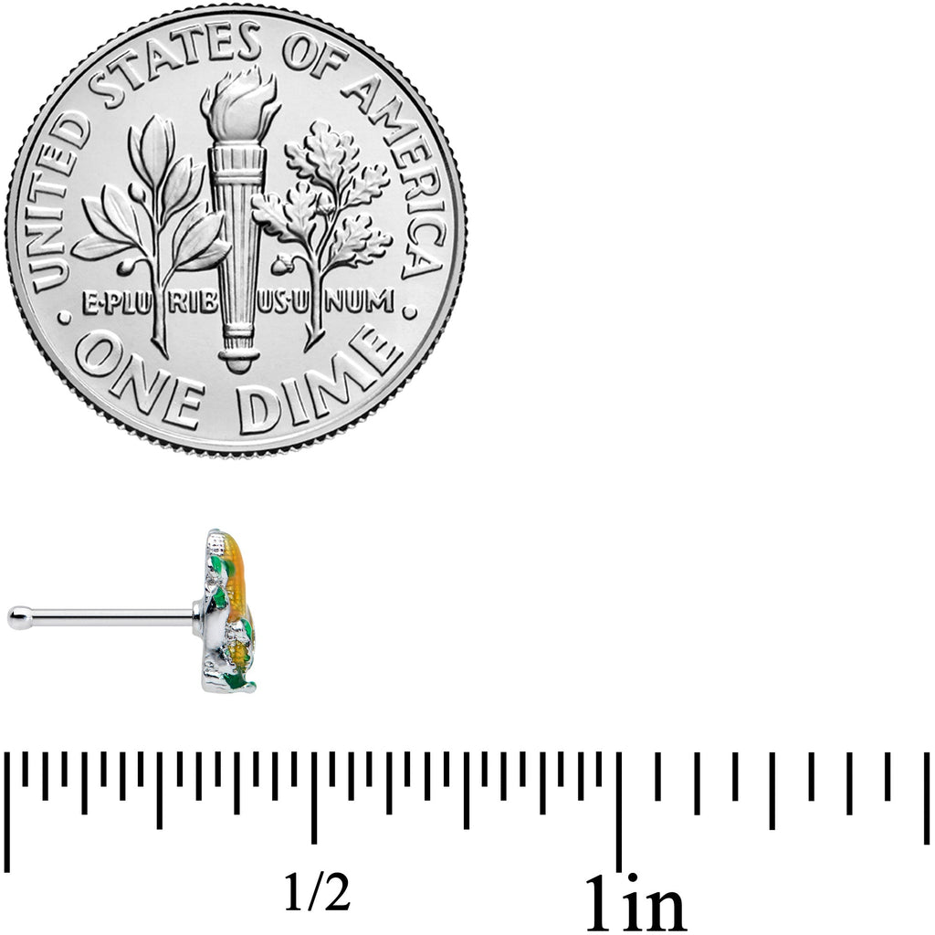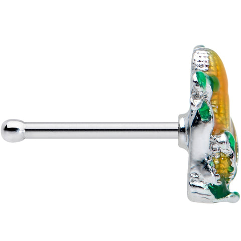There's nothing corny about this 20 gauge nostril ring! It's made with a 6mm durable 316L surgical grade stainless steel straight post. It features a corn charm, with detailed cob and husk. Get ready for barbecue season, this corn is ready to go on this summer themed nose piercing jewelry!Specifications