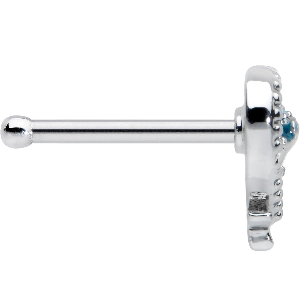 20 Gauge 1/4 Textured Blue Dolphin Heart Nose Bone