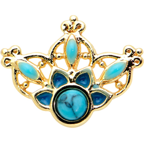 20 Gauge 1/4 Faux Turquoise Gold Tone Opulent Flower Nose Bone