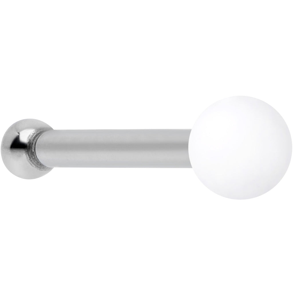 Give your nostril piercing a touch of color with an understated effect with this 20 gauge nose ring! It's made with a 6mm durable 316L surgical grade stainless steel straight post for easy insertion and removal. The other end features a 2mm white matte ball end. If you want a look that won't get lost in the crowd or overwhelm your style, this elegant black nose jewelry is exactly what you're after!Specifications