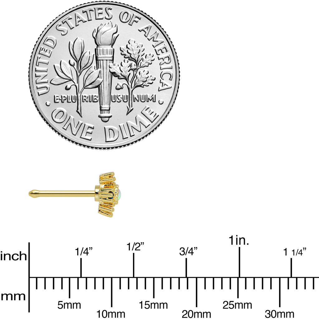 20 Gauge 1/4 White Synthetic Opal Gold Tone Ornate Texture Nose Bone
