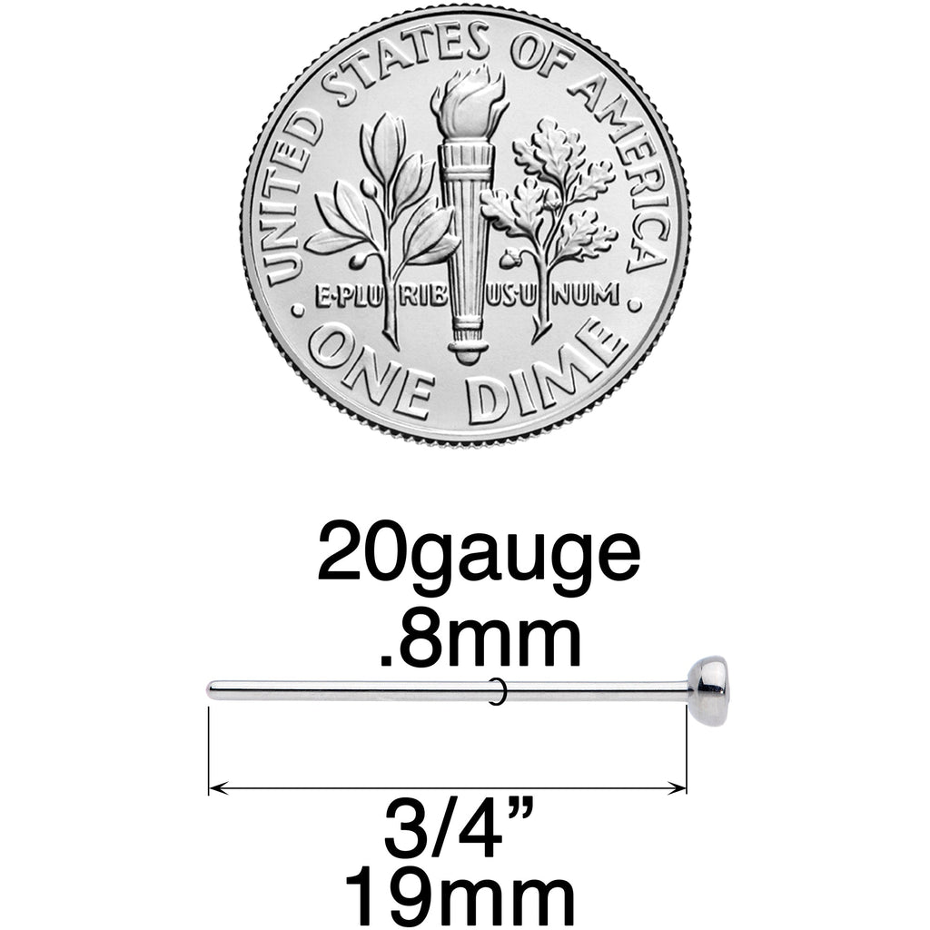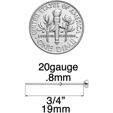 20 Gauge (.8mm), 3/4" (19mm), Solid Grade 23 Implant Grade Titanium Post, 3mm Cubic Zirconia