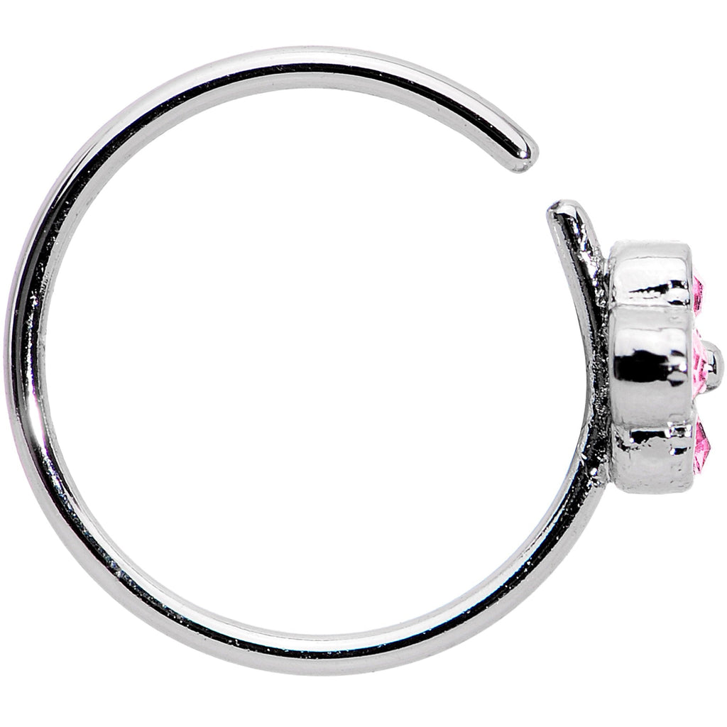If you're into simple and easy to use universal jewelry this pretty 20 gauge nostril ring is right up your alley. Made with an adjustable 10mm durable surgical grade stainless steel circular ring, this nose hoop is set with a pink gem star flower and features ends that can be twisted open and then twisted shut again to easily to fit into your nose piercing. This universal body jewelry can be used for multiple piercings including your nostril, cartilage, or any other place that is a perfect fit for you!
