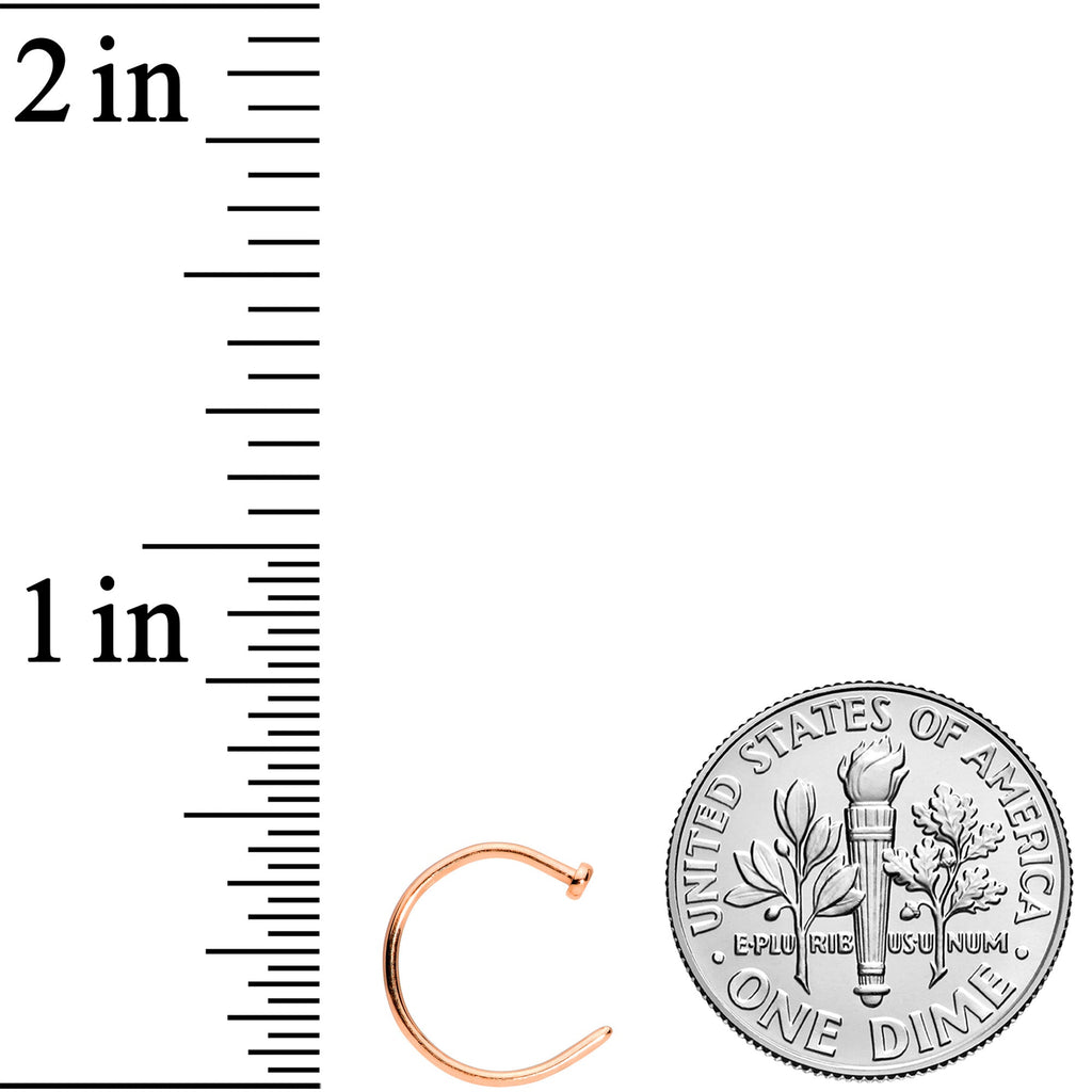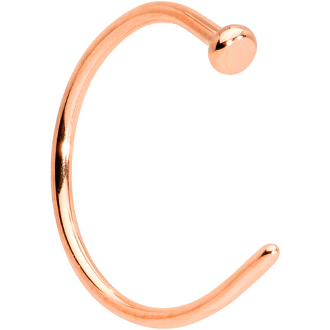 Sometimes the simple things in life are the best. Made of a rose gold tone PVD over solid grade 23 implant grade titanium circular ring, this 20 gauge nostril ring is built for comfort as well as serious durability. It measures 10mm length and has a flat top to rest comfortably against your nostril so you'll barely notice that it's there. Simple beauty and simple comfort mean you're going to simply love it!Specifications