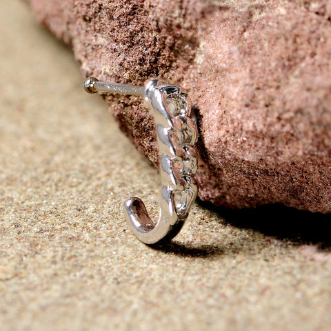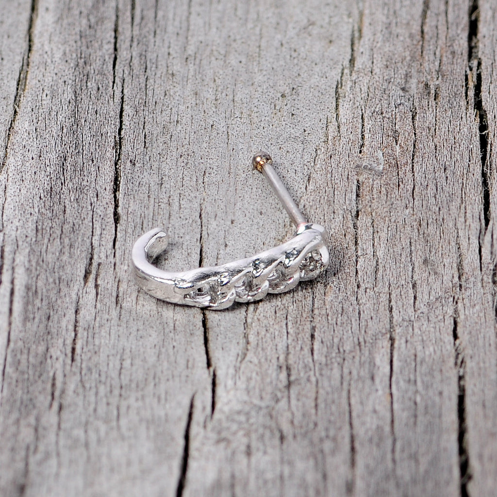 If you're into whips and chains, we've got you (half) covered with this 20 gauge chain-look nose jewelry! It's made with a 10mm durable 316L surgical grade stainless steel post and features a curving portion that emulates the look of a hoop while offering the fit of a nose bone. The nose hoop portion has an openwork chain-look design that you could almost envision hanging from a motorcycle jacket. If you're looking to add some rock-and-roll glamour to your nostril piercing, this nostril jewelry is sure to be what you're looking for!Specifications