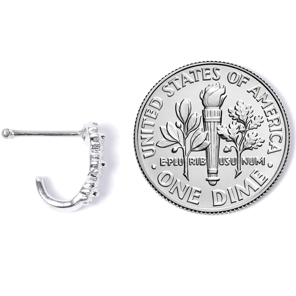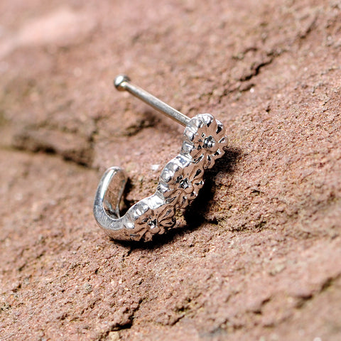 Embrace a free-wheeling floral look for your nose piercing when you wear this 20 gauge nose ring that looks like a hoop! Made with a 10mm durable 316L surgical grade stainless steel post, this nostril piercing features a daisy chain flower charm that wraps halfway around the nose and sits outside of your nostril to give the illusion of a hoop in your regular (pierced!) piercing without actually wearing a hoop at all. Try something new; this nature-inspired nose jewelry may be right for you!Specifications