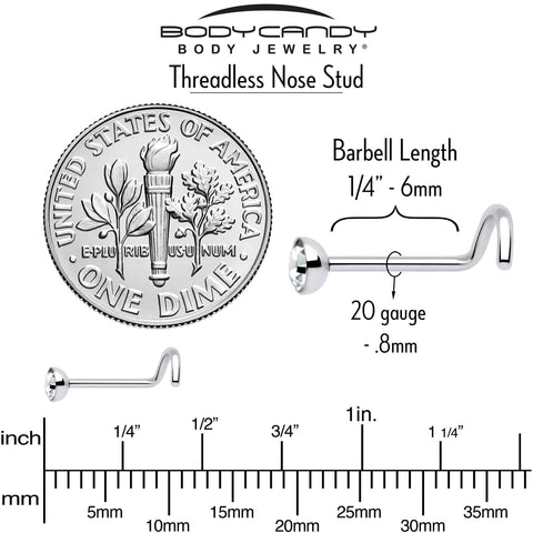 20 Gauge (.8mm), 1/4" (6mm), 316L Surgical Grade Stainless Steel, Threadless Nose Screw Post, Push-In Design, 3mm Bezel Set Cubic Zirconia