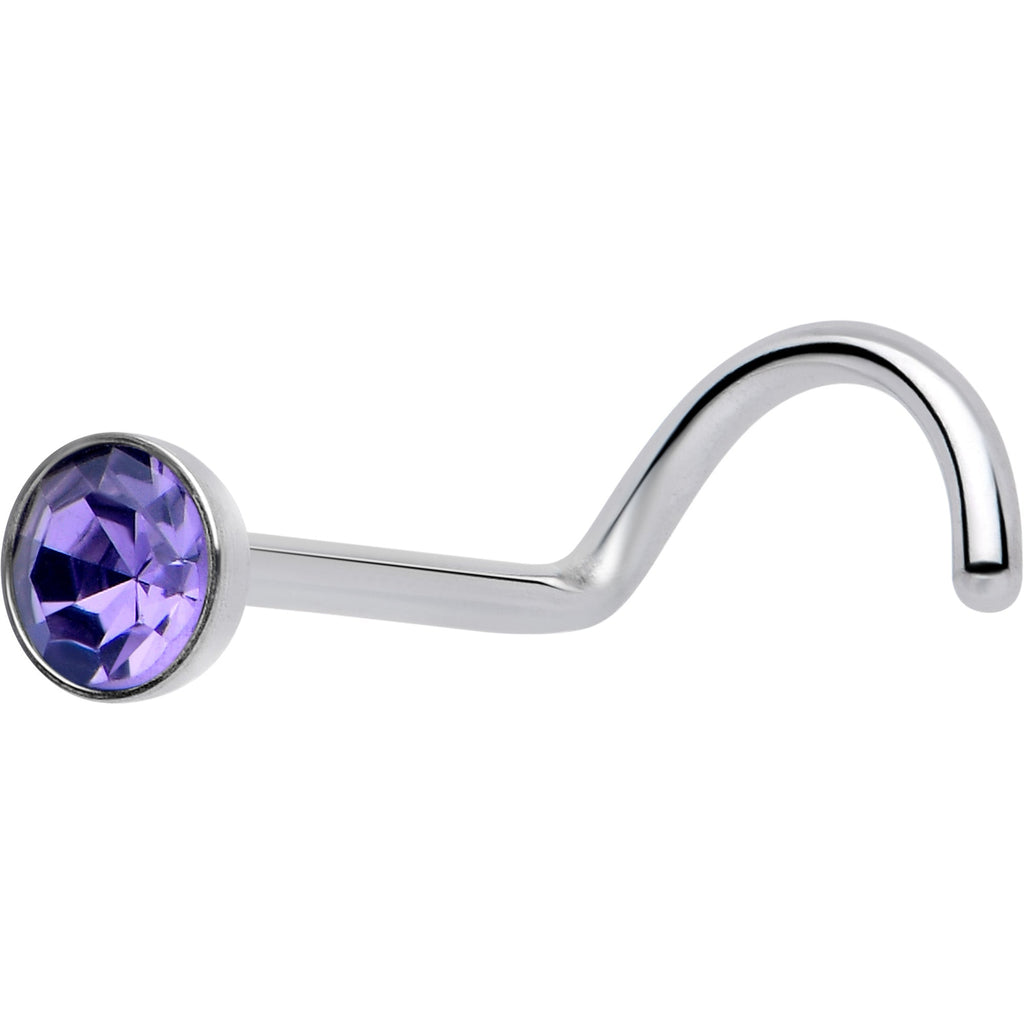 Get a subtle look with enough style to make you sparkle with this 20 gauge nostril ring. It is made with a durable 316L surgical grade stainless steel nose screw post. It features a bezel set 3mm color cubic zirconia gem for an attractively understated appearance.