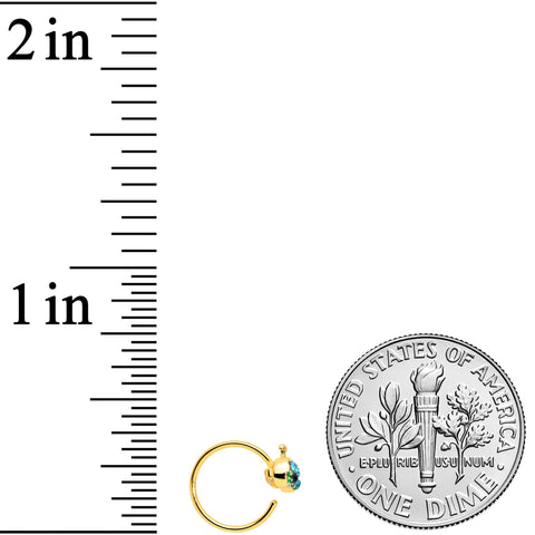 20 Gauge 5/16 Aqua Gem Gold Tone Water Whale Nose Hoop