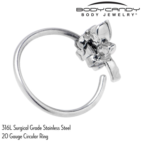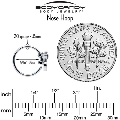 20 Gauge (.8mm), 5/16" (8mm), 316L Surgical Grade Stainless Steel Circular Ring, Cubic Zirconia