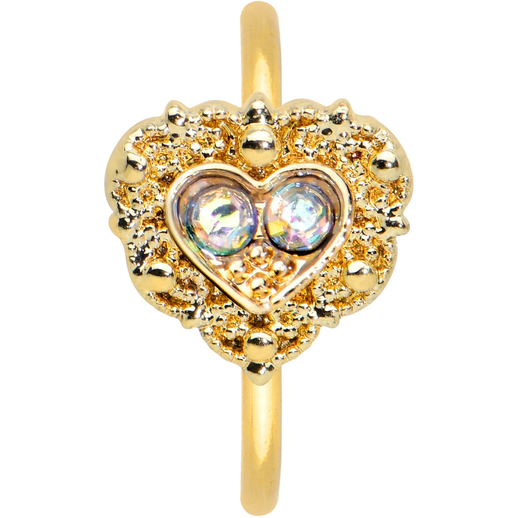 20 Gauge 5/16 Aurora Gem Gold Tone Baroque Heart Nose Hoop