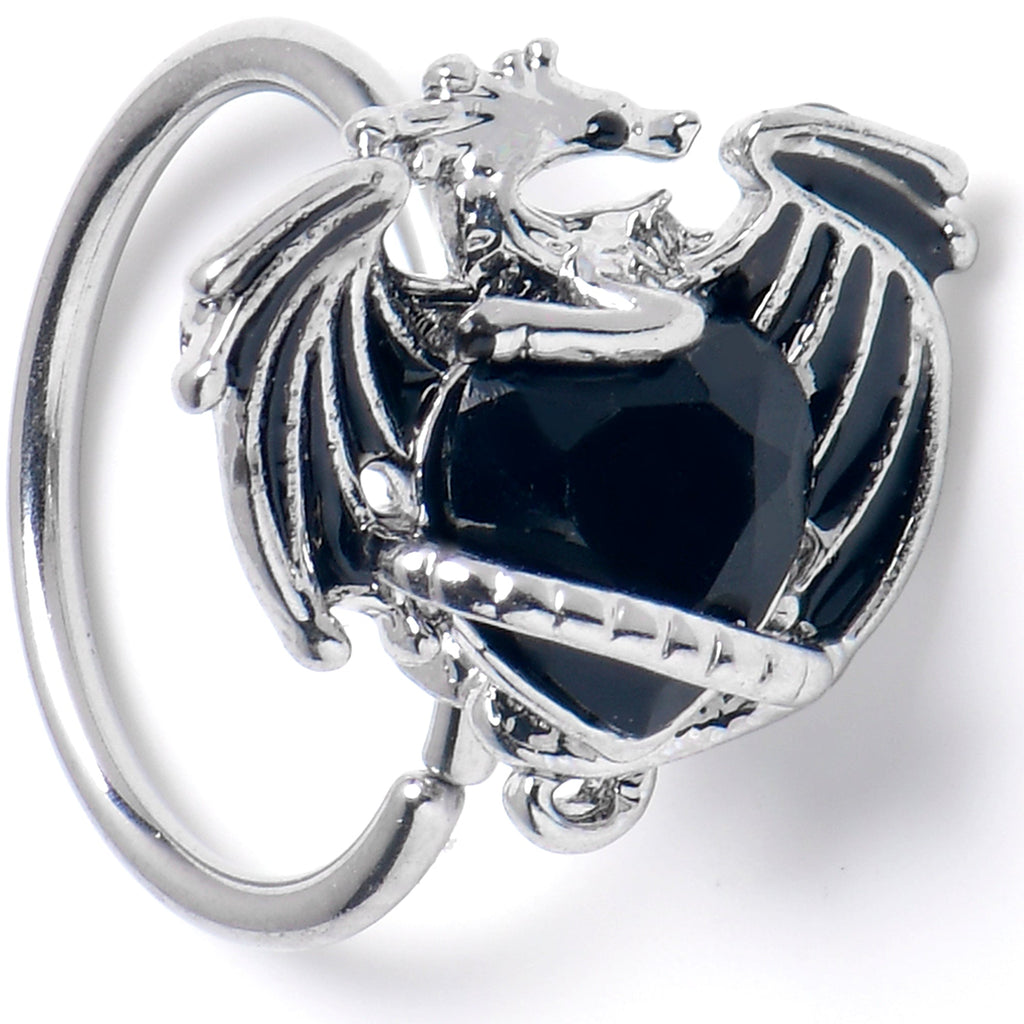 20G 5/16 Black CZ Gem Heart ofDragon Nose Hoop