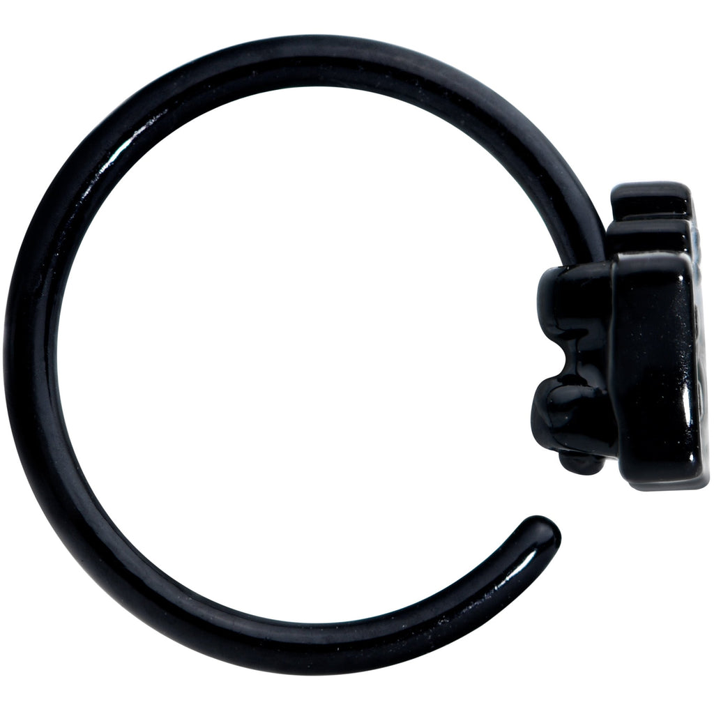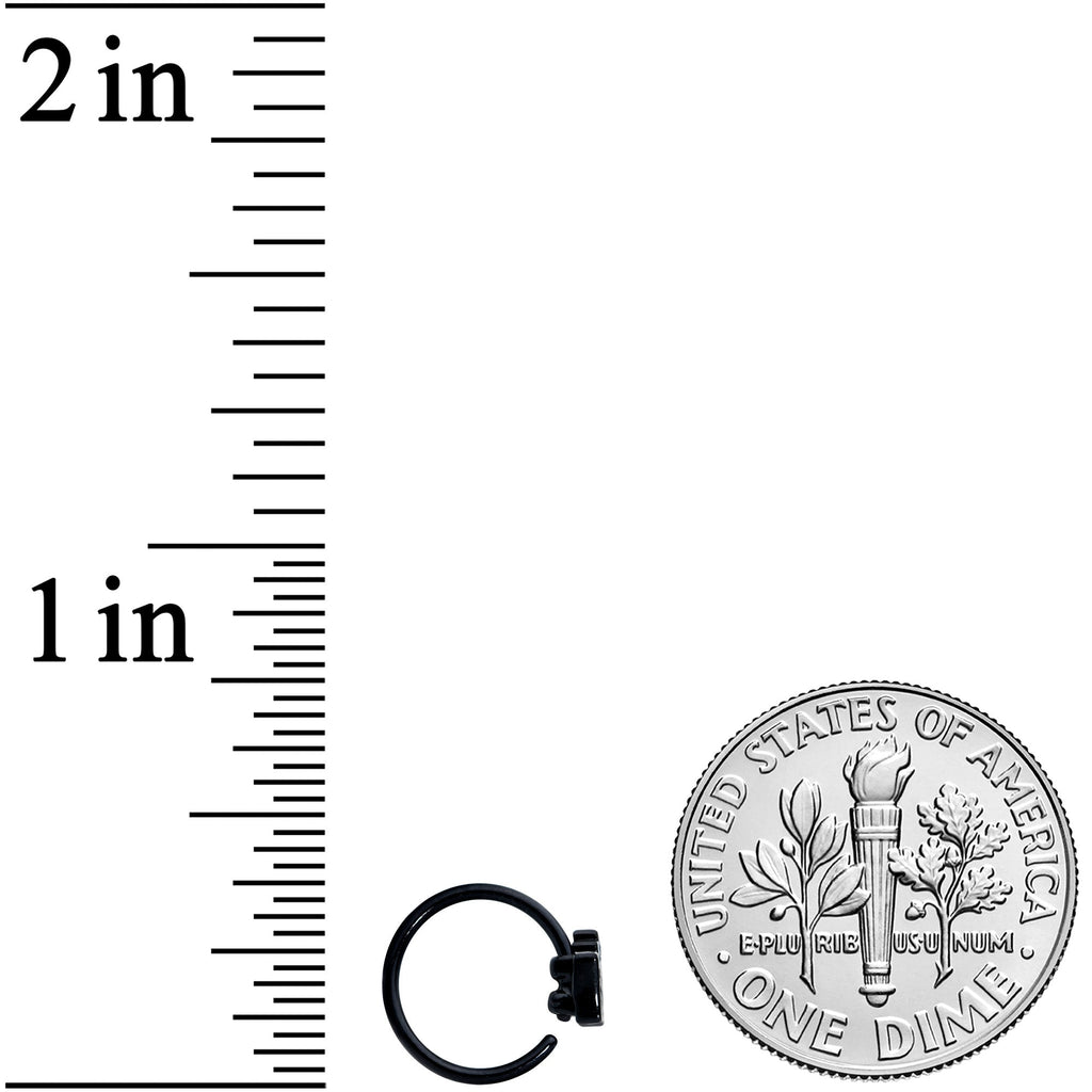 If you're in love with all things dark and spooky, you're going to go absolutely batty about this 20 gauge nostril ring! It's made with an 8mm black PVD over 316L surgical grade stainless steel circular ring. It features a green Boo charm with a spooky ghost. Once you see this nose ring you'll be just dying to wear it in your nostril piercing!Specifications