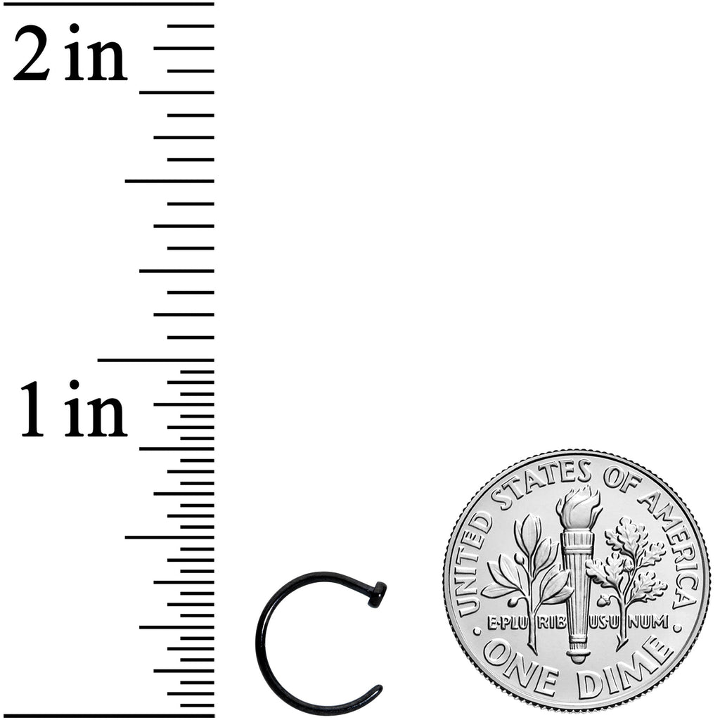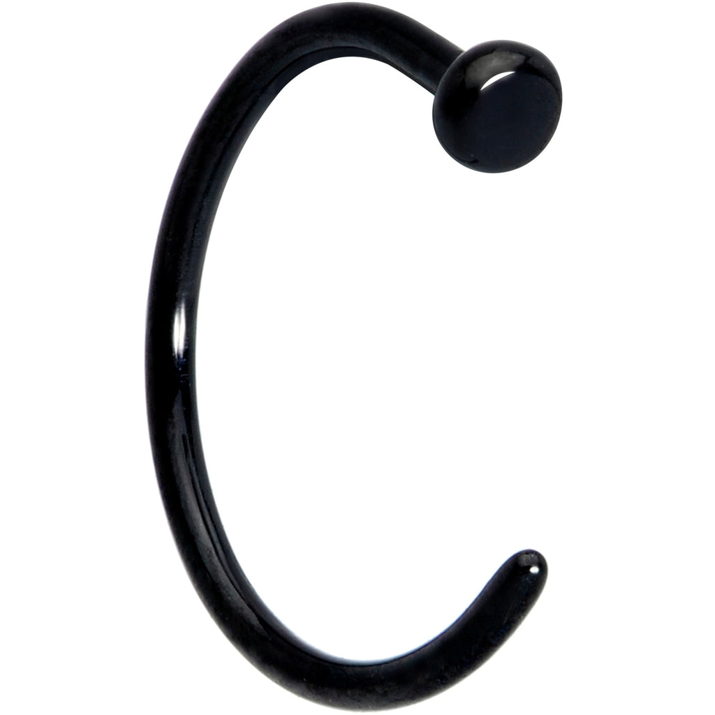 Sometimes the simple things in life are the best. Made of a black PVD over solid grade 23 implant grade titanium circular ring, this 20 gauge nostril ring is built for comfort as well as serious durability. It measures 8mm length and has a flat top to rest comfortably against your nostril so you'll barely notice that it's there. Simple beauty and simple comfort mean you're going to simply love it!Specifications