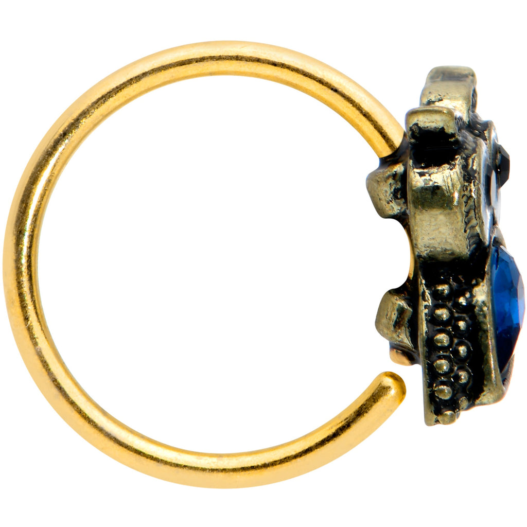 20G 5/16 Blue Gem Gold Tone Wide Eyed Owl Nose Hoop